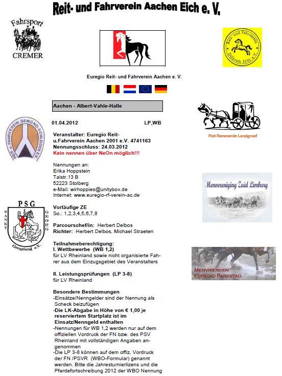 01.04.2012    Fahrsportveranstalltung WBO / Klasse A mit Vereinen der Euregio KV Aachen